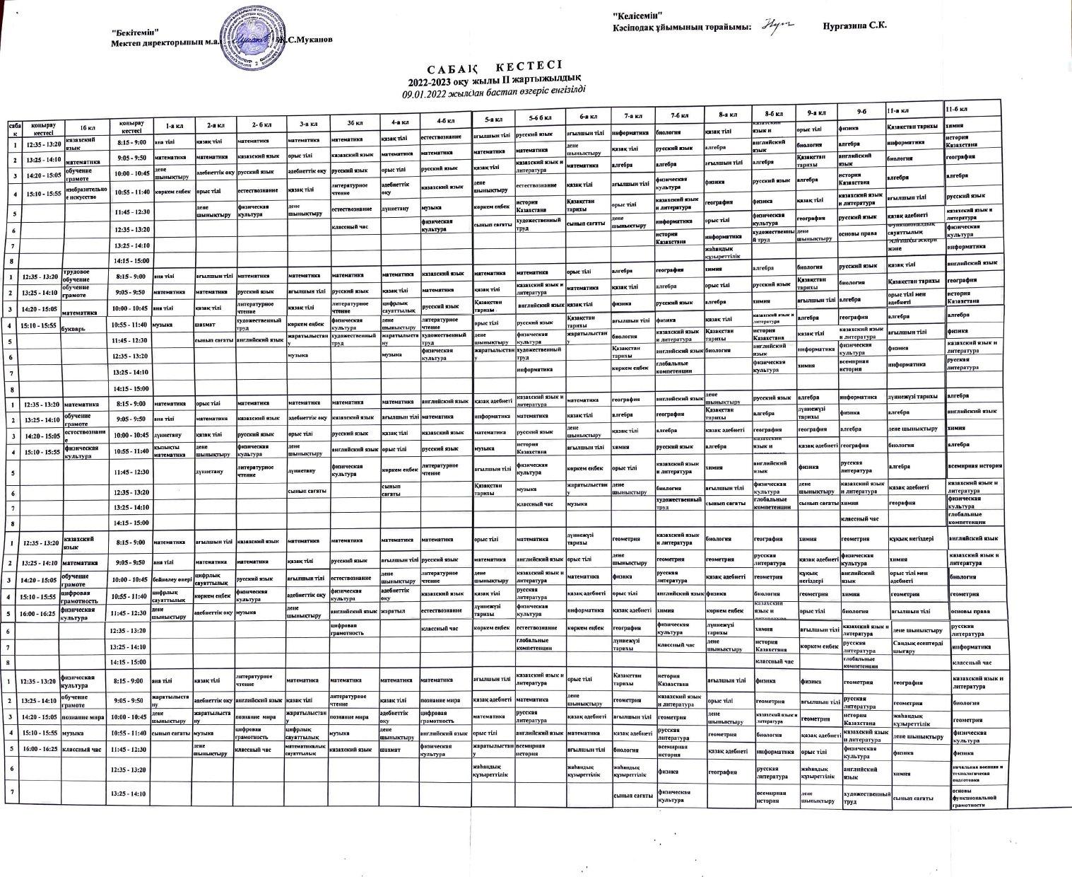 Расписание на 2022-2023 учебный год » Базылбек Ахметов атындағы орта мектеп