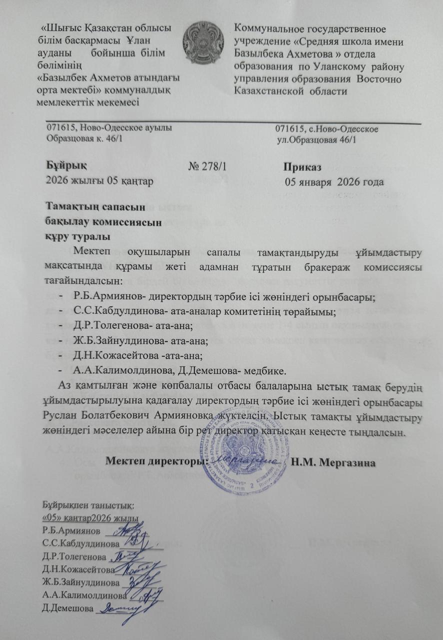 Тамақтың сапасын бақылау » Базылбек Ахметов атындағы орта мектеп