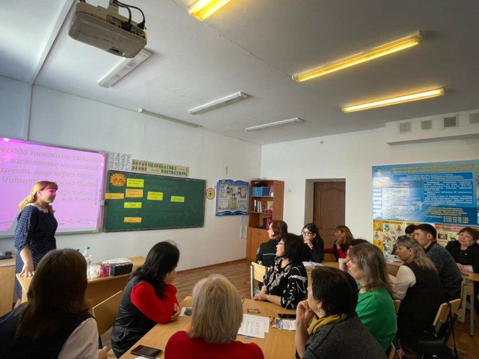 Бастауыш сынып мұғалімдері Веткалова С.В., Раисова Ж.М., орыс тілі мен әдебиеті пәні мұғалімі Ескермесова Г.К., қазақ тілі мен әдебиеті мұғалімі Мамиева С.Қ., ағылшын тілі мұғалімі Қабдолда Ғ.Қ., география пәні мұғалімі Теплова Ю.А., биология пәні мұғалімі Тастанбекова Б.Т., математика пәні мұғалімі Кекубаева Б.Ш., информатика пәні мұғалімі Ермекова Ж.Р. функционалдық сауаттылықты дамыту үшін белсенді оқыту әдістерін енгізу және пайдалану бойынша шеберлік сабақтарын көрсетті. Мұғалімдер оқытудың белсенді әдістерін қолдану, мәтінмен жұмыс жасау, картографиялық сауаттылықты дамыту, сыни тұрғыдан ойлау технологиясын, мобильді және интерактивті технологияларды қолдану бойынша өз тұжырымдары мен жетістіктерімен бөлісті.